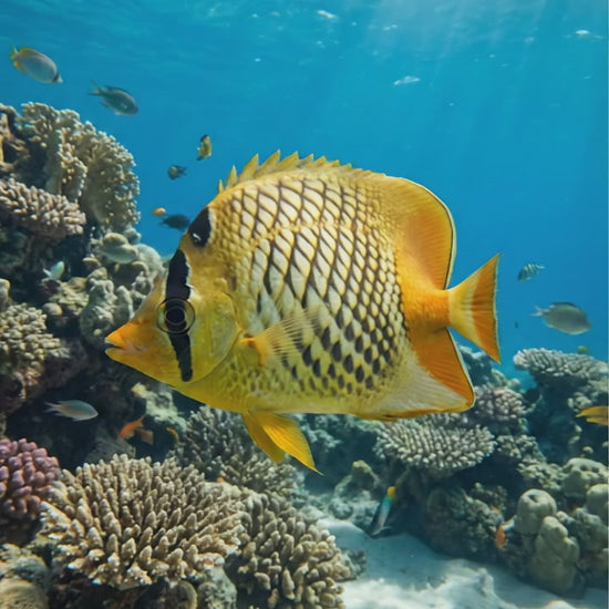 The Pearlscale Butterflyfish is a stunning marine species, named for the cross-hatched, pearl-like pattern on its sides. It is a peaceful fish that adds geometric beauty to any saltwater aquarium. Known for being hardier than many other butterflyfish, it is a great choice for aquarists looking to introduce this family into their tank.